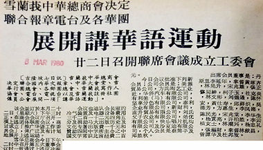 雪蘭莪中華總商會學新加坡政府兮彼一套,呠佇馬來西亞發起「講華語運動」。支持推動兮團體包括報紙界兮媒體、先生工會。受着漢民族主義思潮兮影響,連福建、海南佮潮州會館呠參做一伙去推動。